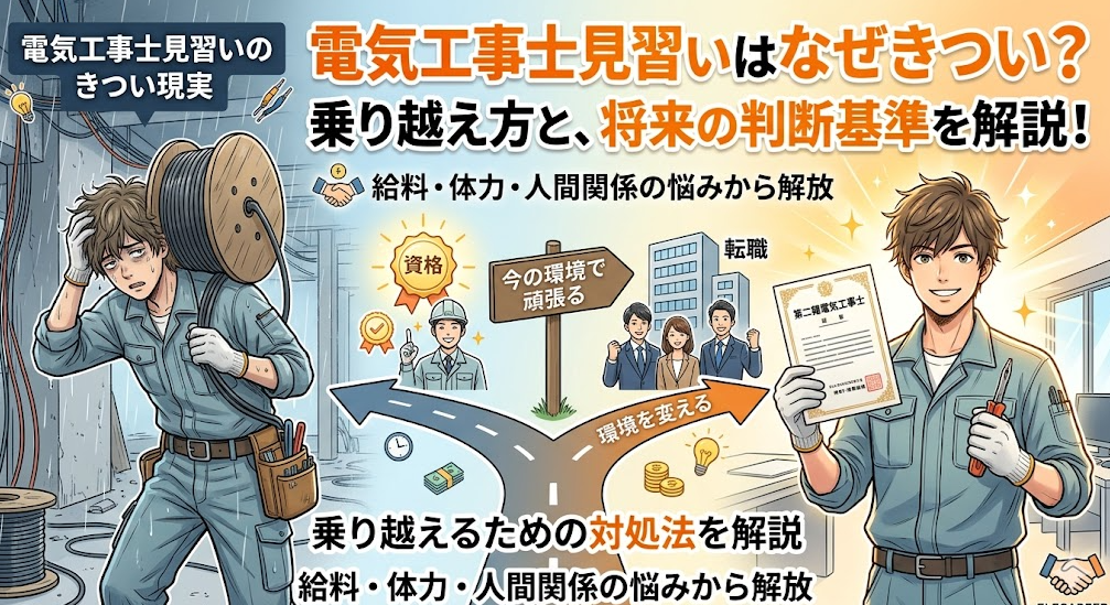 電気工事士の見習いとして働き始めたものの、想像以上の過酷さに悩んでいませんか。...